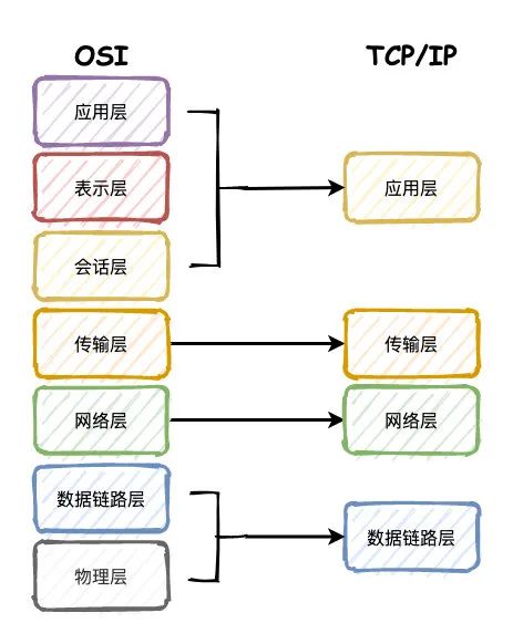 TCP/IP 则是四层的结构,相当于是对 OSI(Open System Interconnect 的缩写,意为开放式系统互联)模型的简化